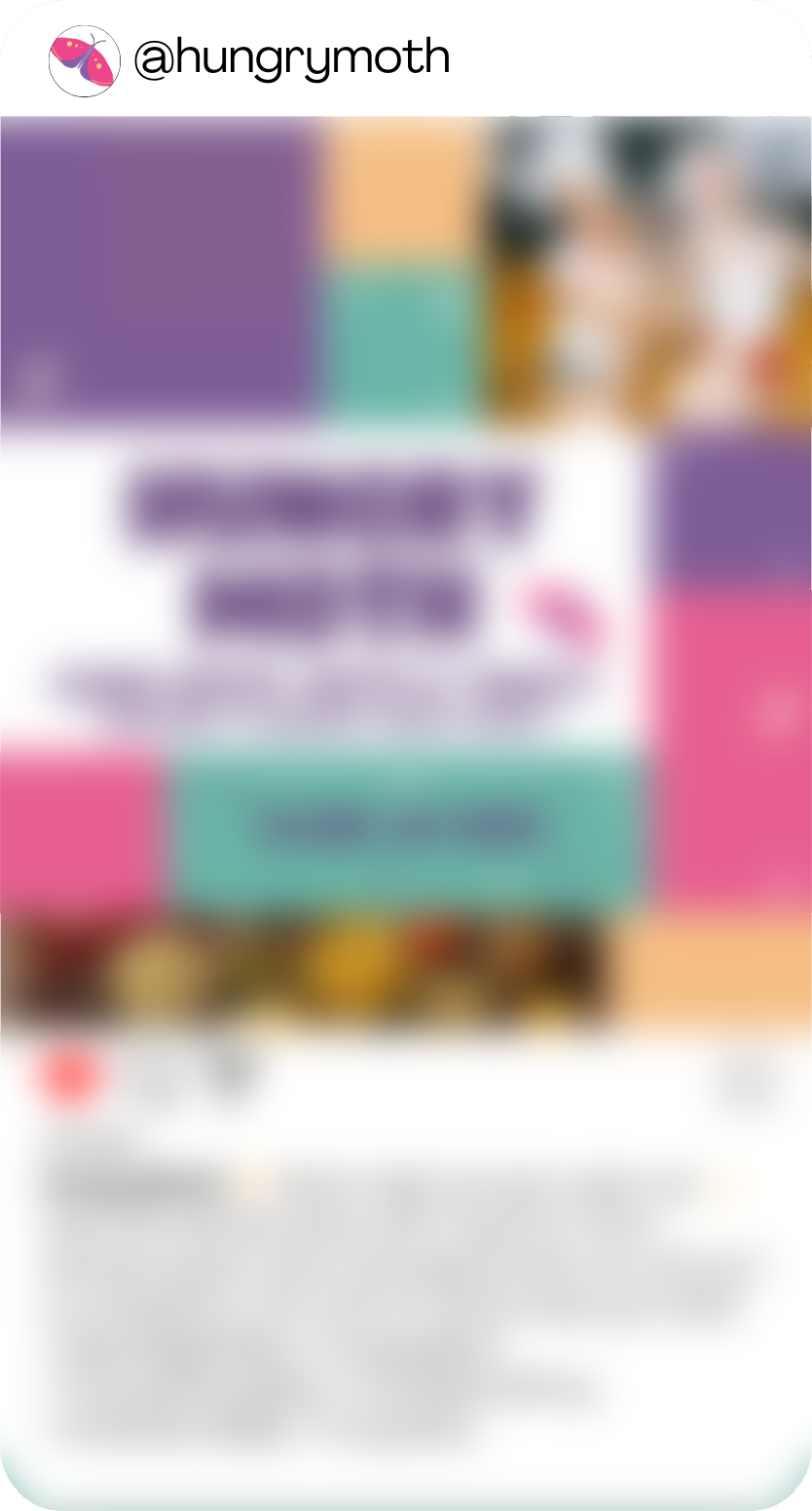 To boost engagement and build community around Hungry Moth, I crafted fun, on-brand content that speaks directly to our players. This included vibrant visuals paired with short, easy to follow videos, plus clever hashtags to spark conversation. I designed posts that guide followers to the link in bio, leading them to blog posts and ways to connect with fellow Hungry Moth fans. This approach creates a welcoming, playful vibe that encourages sharing and builds lasting connections.
